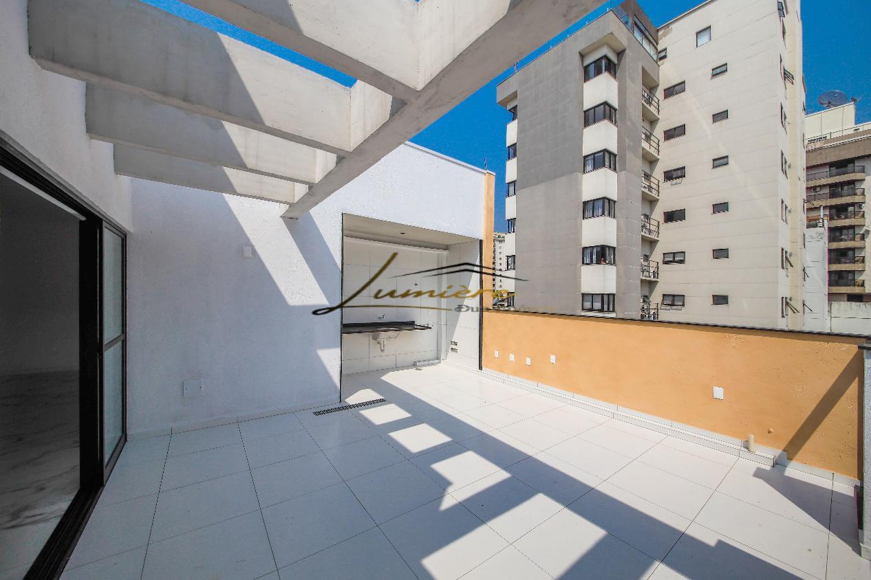 No pavimento superior, com possibilidade de acesso também pelo elevador nas unidades de fundos, a cobertura dispõe de uma sala espaçosa, banheiro social e um terraço descoberto, ideal para criar um espaço de lazer exclusivo.